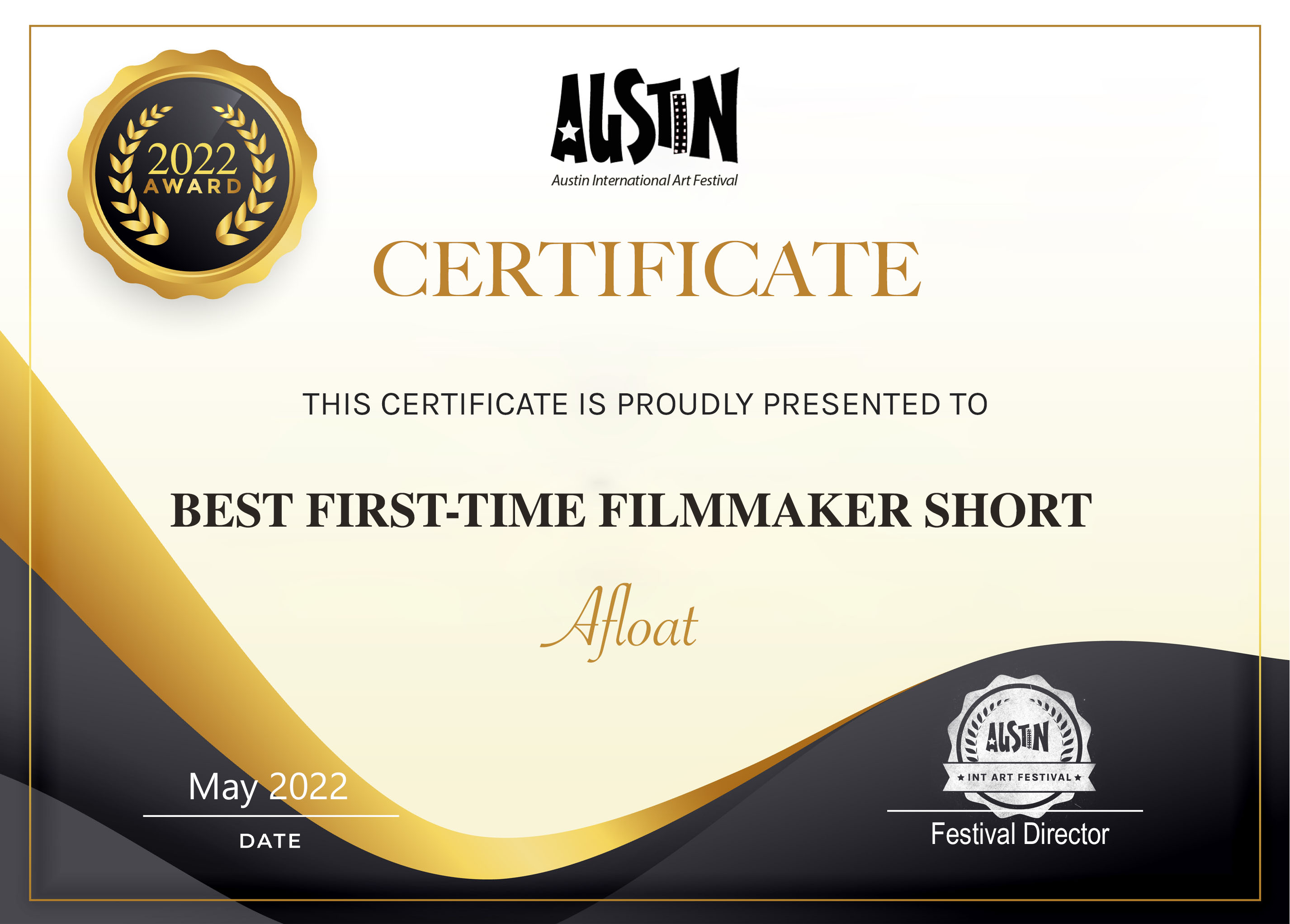 Afloat /Best First-time Filmmaker Short | certificate
